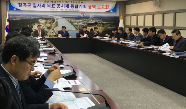 【경상포커스=임종구기자】칠곡군은 17일 군청 제1회의실에서 간부공무원들이 참석한 가운데 민선7기 일자리창출 비전과 실행계획 수립을 위한 지역일자리 목표 공시제 용역보고회를 개최했다.
