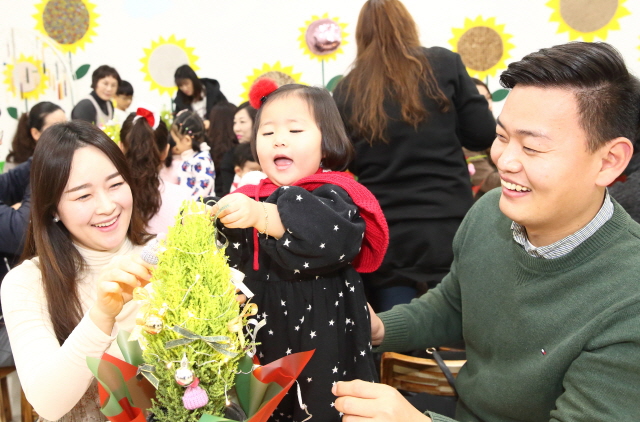 “엄마, 제가 크리스마스트리를 만들었어요!”【경상포커스=배성호기자】지난 25일 칠곡군 꿀벌나라 테마공원에서 김다온(여·3세·석적읍)양이 어머니 김민서(34세), 아버지 김진환(34세)씨와 크리스마스트리를 직접 만들며 기뻐하고 있다.