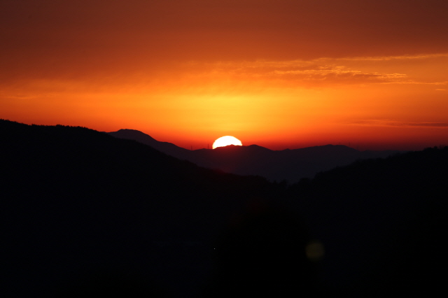 오전 7시 38분경 어둠사이로 가야산의 붉은 해가 서서히 그 첫 모습을 드러냈다.