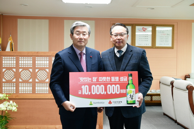 금복주는 주력상품인 ‘참소주’에 ‘사랑의 열매’를 부착하고 판매한 수익금 2억 2천만원을 경북사회복지공동모금회에 전달했고, ㈜금복주의 기부의사에 따라 그 중 1천만원을 고령군에 기탁했다.