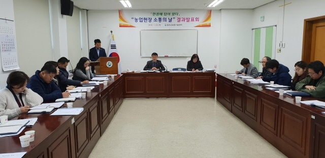 이를 위해 지난 24일 직원 30여 명이 참석한 가운데 ‘농업현장 소통의 날’ 결과발표회를 개최해 농가와 소통한 결과를 발표하고 영농에 대한 애로사항과 건의사항에 대한 대책을 마련했다.