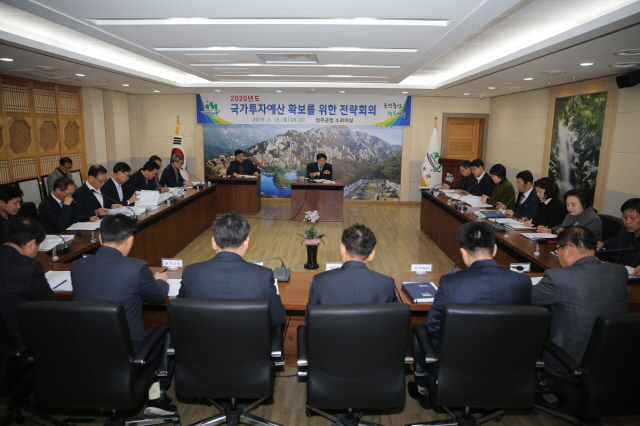 성주군, 2020 국가투자예산 확보를 위한 전략회의 개최【경상포커스=전상철기자】성주군은 18일 이병환 군수 주재로 2020년도 국가투자예산 확보를 위한 전략회의를 개최해 실과소장들이 참석한 가운데 부서별 대응전략에 대해 논의했다.