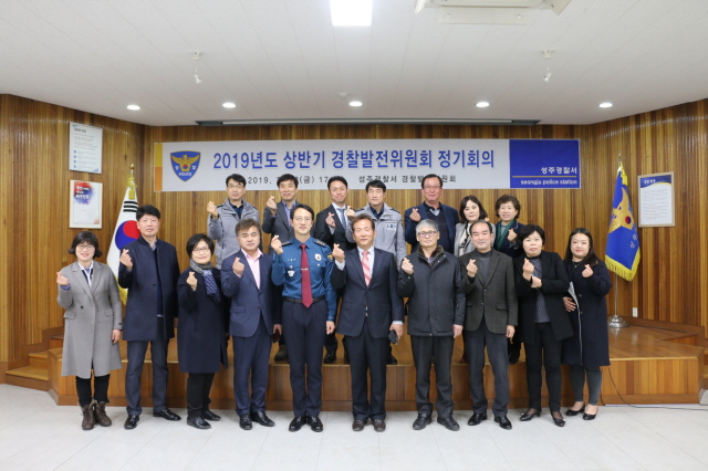 성주경찰서, 상반기 경찰발전위원회 정기회의 개최【경상포커스=전상철기자】성주경찰서는 22일 경찰서 대회의실에서 경찰서장, 과장, 경찰발전위원장 및 위원 20여명이 참석한 가운데 ’19년 상반기 경찰발전위원회 정기회의를 개최했다.
