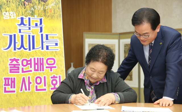 칠곡군은 지난 6일 군청 접견실에서 백선기 군수를 비롯해 칠곡가시나들 출연 배우, 지역 주민 등이 참가한 가운데 팬 사인회를 개최했다.