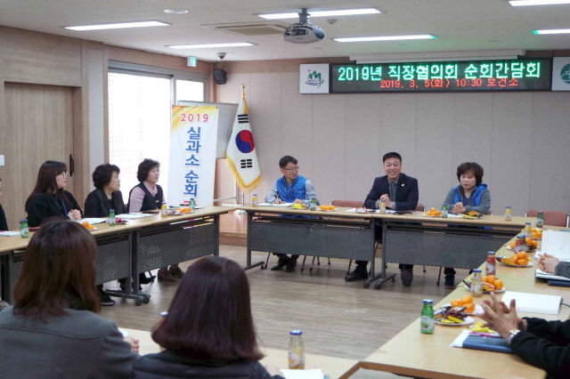 이번 순회간담회는 곽상동 직장협의회 회장을 비롯해 임원들과 회원들이 얼굴을 맞대고 소통하는 자리로 회원들의 고충 및 건의사항 수렴을 통해 회원들의 복리증진 및 직장협의회와 군정의 발전을 도모하기 위한 자리로 마련됐다.