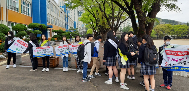 10일 등굣길 학업중단 예방 홍보캠페인 행사는 전교생과 전교사가 교문에 모여 학업중단 제로 만들기에 한마음이 돼 서로가 다짐하고, 힘이 된 계기가 됐다.