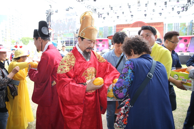 전국 최고인 성주참외 나라님께 진상의식 재현남부내륙철도 성주역 유치를 기원하는 성주참외 진상이요~!