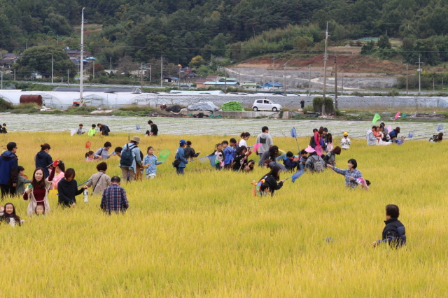성주가야산으로 와요 메뚜기 잡으러 와요~【경상포커스=전상철기자】2019 성주가야산 황금들녘 메뚜기잡이 체험축제(이하 메뚜기잡이축제)가 다음달 5일부터.6일까지 성주군 수륜면 수성리 104번지 어울림마당에서 개최된다.