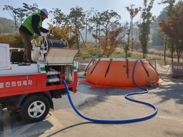 경연방법은 산불전문예방진화대 10명이 산불진화차에서 660m 호스를 연결하여 60m 산 정상에 설치된 세 개의 20ℓ 담수탱크에 담수를 완료하는 방법으로 진행됐다.
