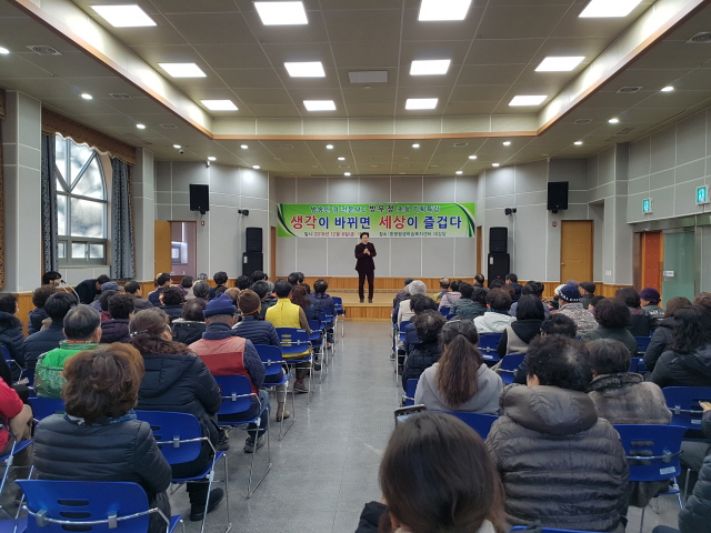 칠곡군 동명면 바뀌면 세상이 즐겁다’ 주제 특강![]() 【경상포커스=배성호기자】칠곡군 동명면은 6일 평생학습복지센터 대강당에서 주민 150여 명이 참석한 가운데 방송인 겸 전문MC 방우정 강사를 초청go ‘생각이 바뀌면 세상이 즐겁다’를 주제로 특강을 실시했다.