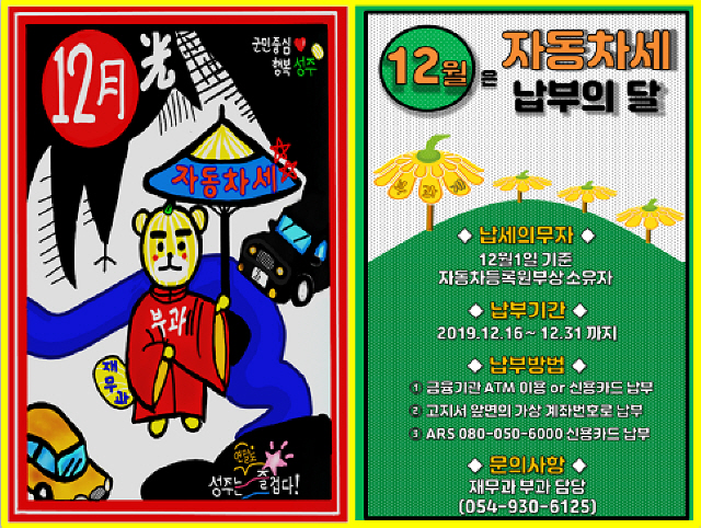 자동차세와 관련해 궁금한 사항은 군청 재무과 (054-930-6125)로 문의하면 안내 받을 수 있다.