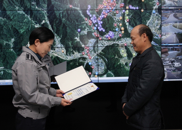 이날 표창 수여는 지난 12일 새벽 고령읍내에서 발생한 편의점 강도 사건장소 주변 CCTV를 면밀히 분석해 용의자의 이동경로를 파악하고 신속히 경찰에 통보함으로써 사건을 조기에 해결하는 데 기여한 공적이 인정돼 수여하게 된 것이다.