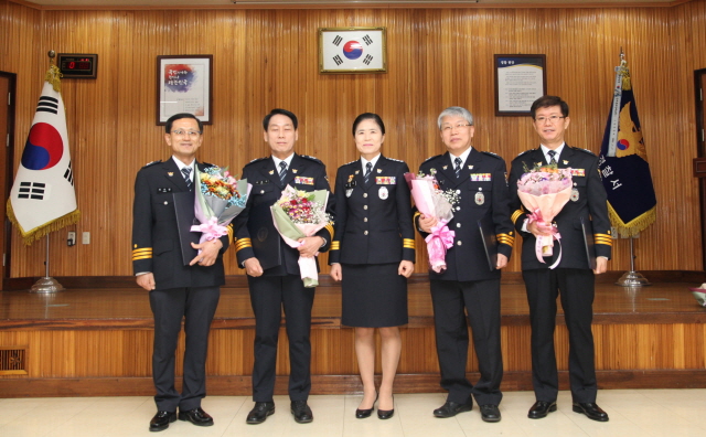 고령署, ‘경감 승진 임용식’ 개최【경상포커스=전상철기자】고령경찰서(서장 김영옥)는 2일 경찰서 4층 대회의실에서 직원들의 축하 속에 운수치안센터 최수열, 다산파출소 이호수, 쌍림파출소 구동술, 대가야 지구대 박대기가 경위에서 경감로 승진 임용됐다.