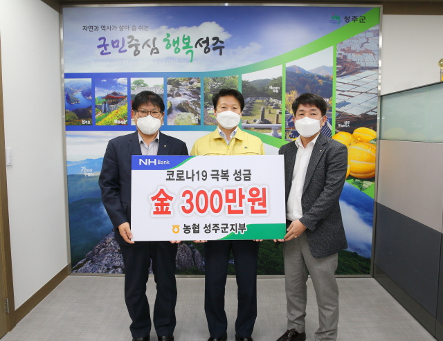 또한 성주군 금융기관인 대구은행 성주지점(지점장 이계수)에서는 코로나19와 관련해 구호물품 지원 및 방역물품 구입 등을 위해 대한적십자사 경북지사를 통해 성금 2000만원을 기부했고, 농협성주군지부(지부장 이영환)에서는 성금 300만원을 기부했다.