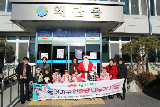 왜관읍장, 산타로 변신해 독거가구 연하장 전달【경상포커스=임종구기자】칠곡군 왜관읍․왜관읍지역사회보장협의체은 지난 19일 어린이집 원아들과 함께 관내 독거가구에 연하장을 전달하는 사업을 실시했다.
