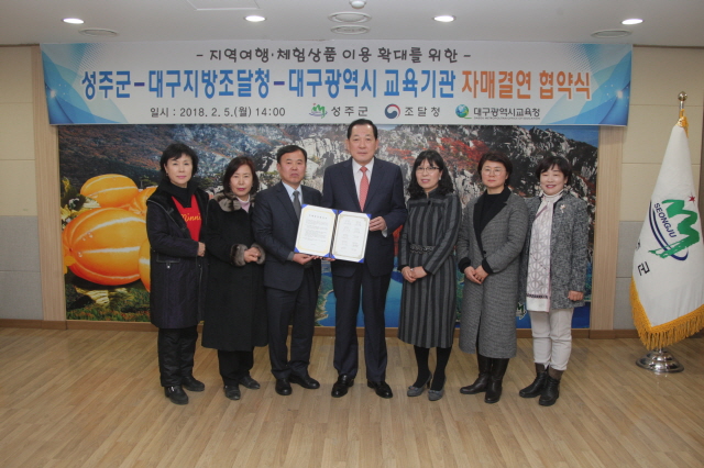 【경상포커스=전상철기자】성주군은 지난 5일 군청 소회의실에서 대구지방조달청과 대구광역시 교육기관 간 지역여행‧ 체험상품 이용 확대를 위한 자매결연 협약을 체결했다.