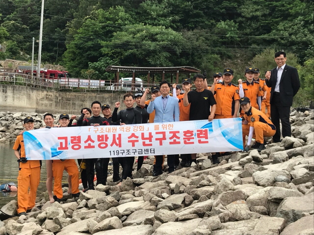 【경상포커스=전상철기자】고령소방서는 15일 신동저수지(대가야읍 신리)에서 119구조구급대원 20여명이 참여한 가운데 2018년 하계 수난사고 대비 구조훈련을 실시했다.