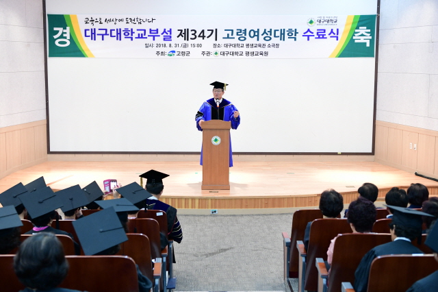 【경상포커스=전상철기자】고령군은 제34기 고령군 여성대학 수료식을 대구대학교 평생교육관에서 곽용환 고령군수를 비롯한 대구대학교 평생교육원장, 군의장 및 군의원, 도의원 그리고 여성대학 총동창회장 및 기별 동창회장 등 100여명이 참석한 가운데 개최했다.고 2일 밝혔다.