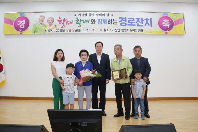 한편 이날 경로잔치와 더불어 진행된 할매할배의 날 행사에서 ‘화목한 모범가족상’ 에는 삼대가 함께 사는 채운곤(76세, 행정2리) 할아버지 가족이 선정되며 조부모, 부모, 손주 6명 모두가 기쁨을 나눴다.