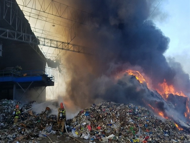 경찰과 소방당국은 쌓아 둔 폐기물에서 연기가 났다는 목격자 진술에 따라 정확한 화재 원인을 조사하고 있다.