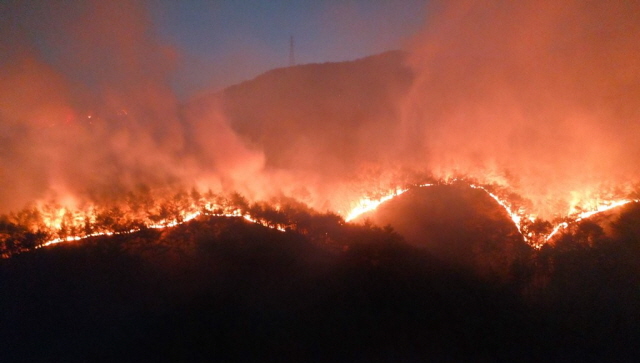 하지만 해가 질 때까지 완전히 끄지 못해 밤에는 헬기 대신 산림청 공중진화대와 산불특수진화대를 투입해 불을 끄고 있다.