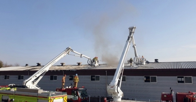 <사진> 성주군 선남면의 한 공장에서 화재가 발생해 소방이 진화중이다./경북소방본부 제공